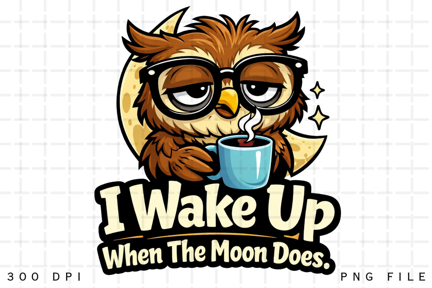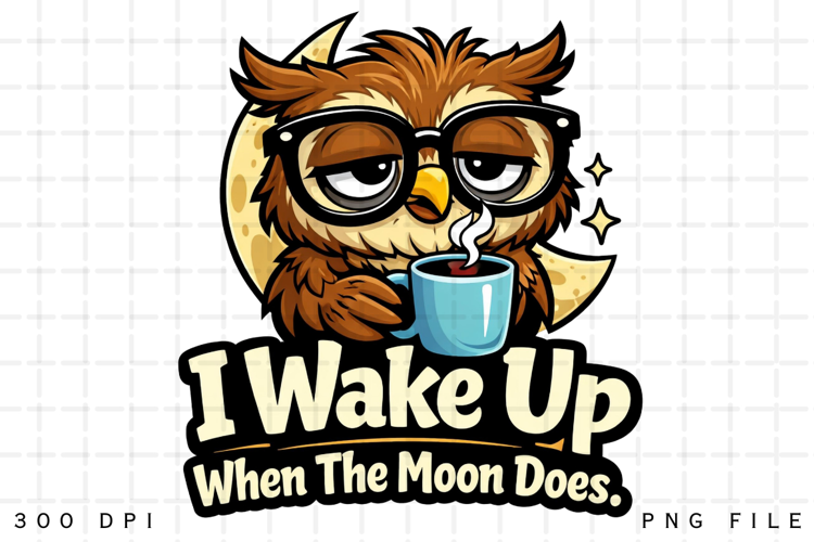 I Wake Up When The Moon Does – Cute Night Owl Coffee Lover PNG Design