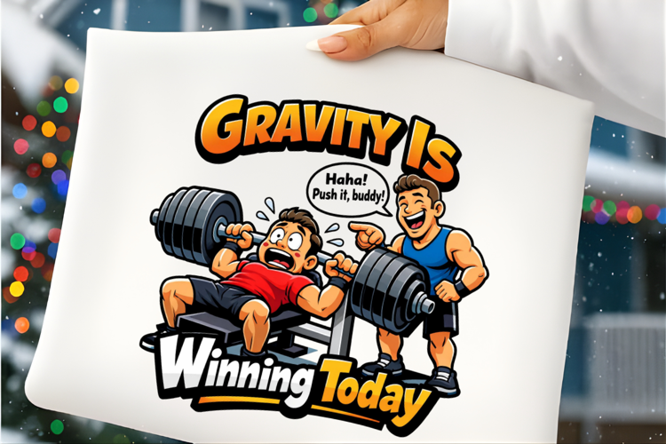 Gravity Is Winning Today – Funny Gym Bench Press Workout PNG Design