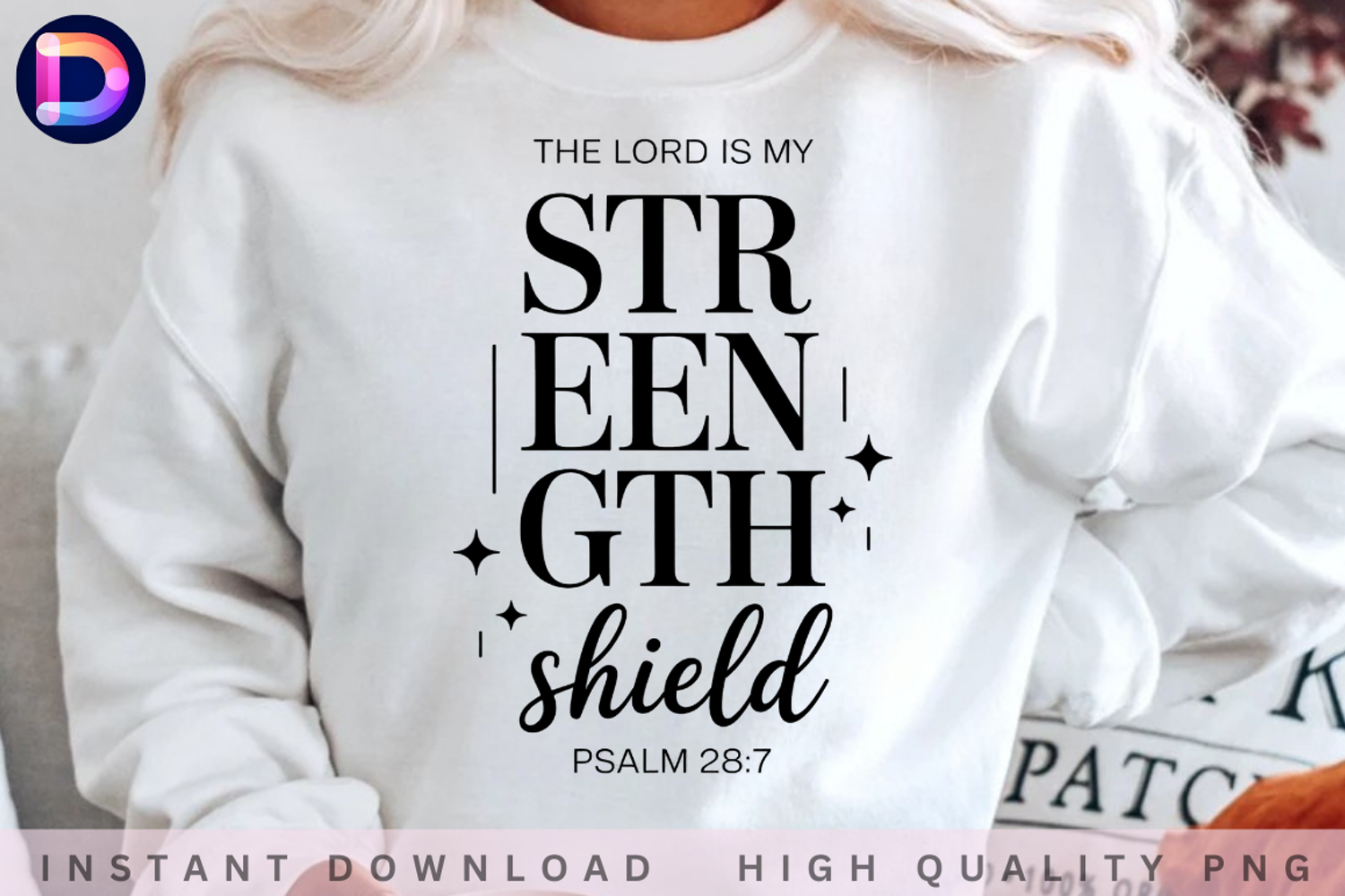 Christian Quote Faith Quote Christian Png Christian Sublimation Bible Verse Design Bible Verse Shirt Design Christian Typography The Lord Is My Strength And Shield Psalm 287 Strength And Shield Verse