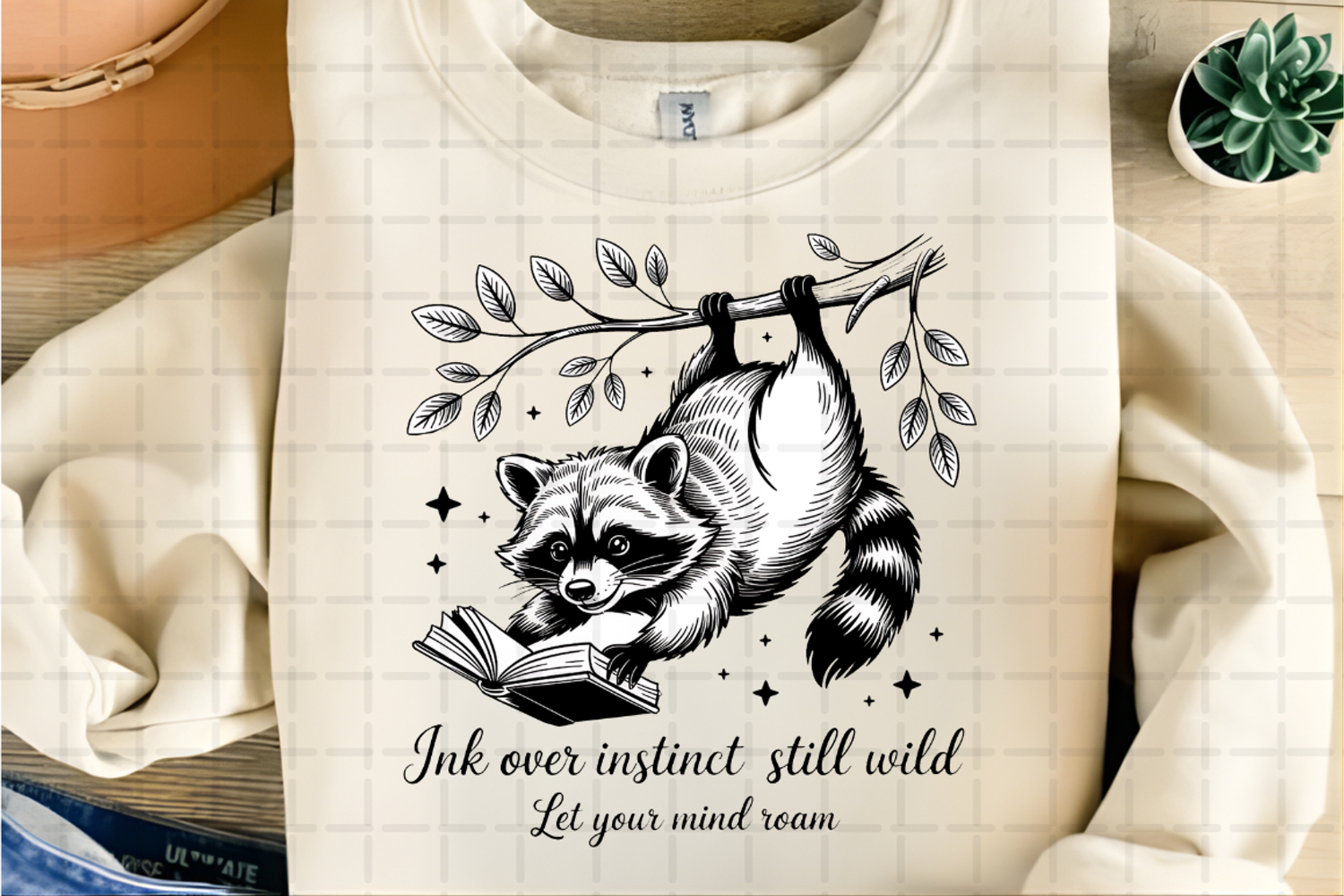 Similar Design Products to Curious Raccoon Reading a Book Hanging from a Tree