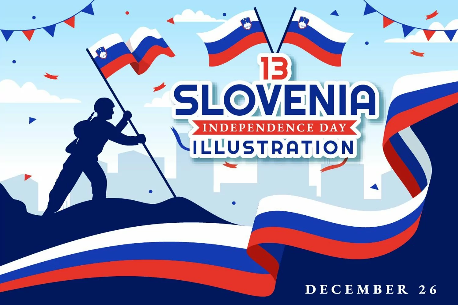 Slovenia Independence Day Vector Illustration on 26 December with Waving Flag Background Design in National Unity Holiday Celebration Flat Cartoon Suitable for Poster, Web Banner, Brochure, Landing Page and Others Background Template Features:
