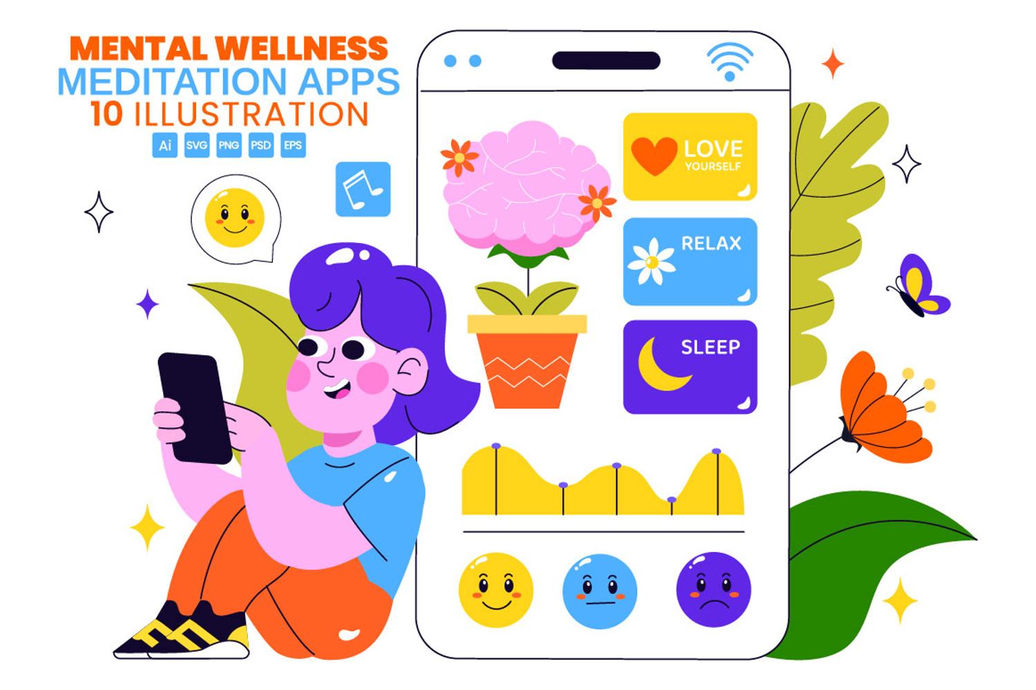 10 Mental Wellness Apps Illustration example image 1