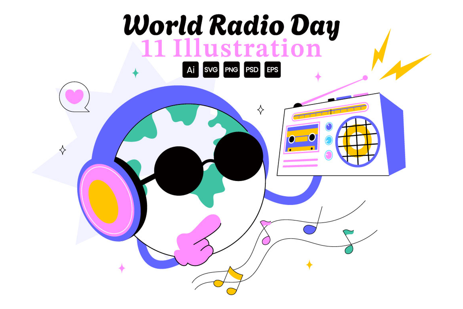 World Radio Day Vector Illustration on 13 February Depicting Technology, Science, and Communication in a Flat Style Cartoon Background Suitable for Poster, Web Banner, Brochure, Landing Page and Others Background Template Features: