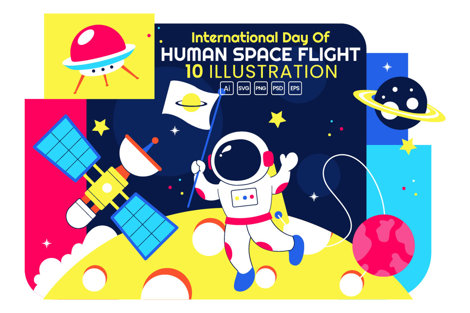Similar Design Products to 10 Human Space Flight Day Illustration
