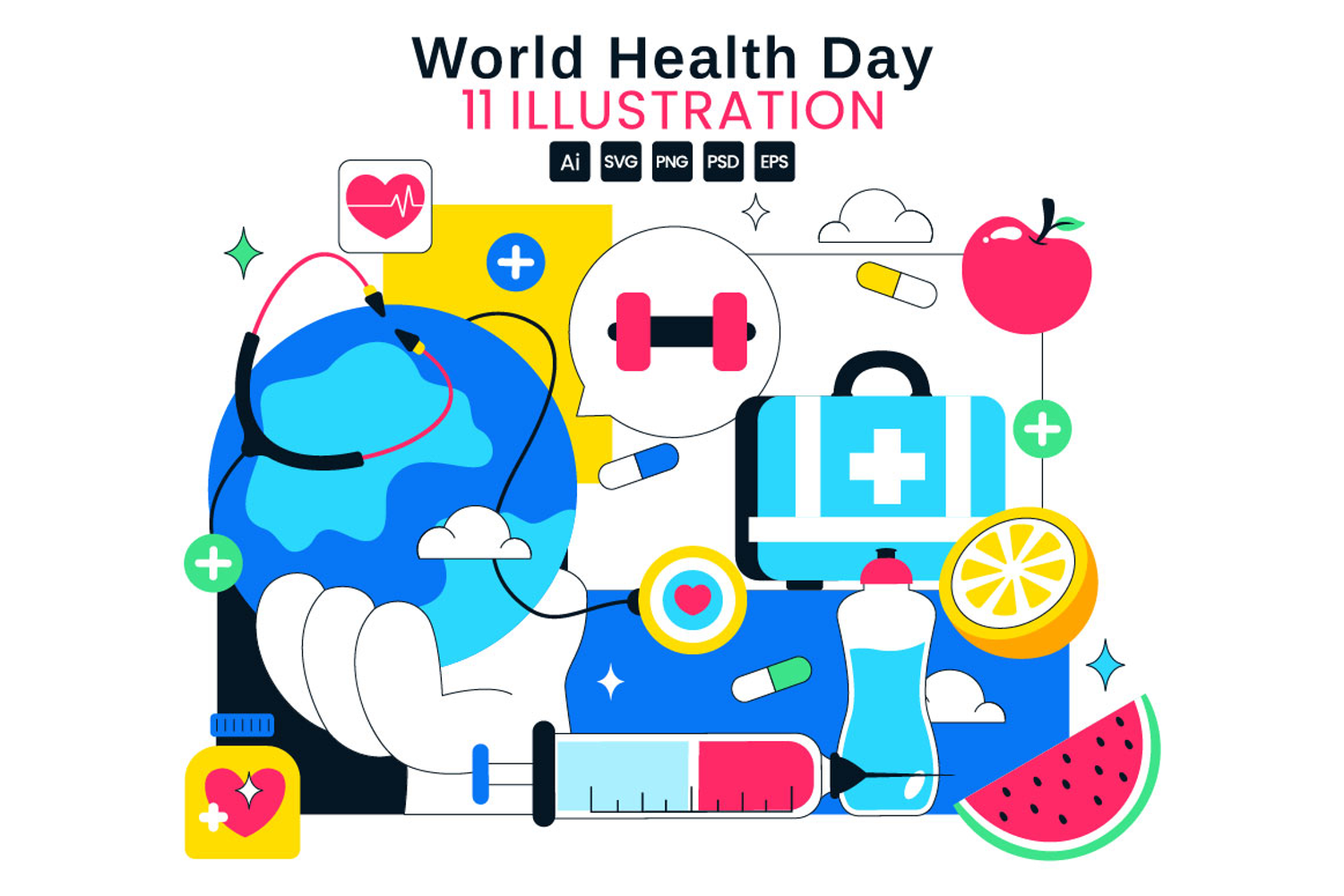 World Health Day Vector Illustration on April 7 Featuring Earth And Medical Equipment Highlighting The Importance Of Healthy Lifestyle in Background Suitable for Poster, Web Banner, Brochure, Landing Page and Others Background Template Features: