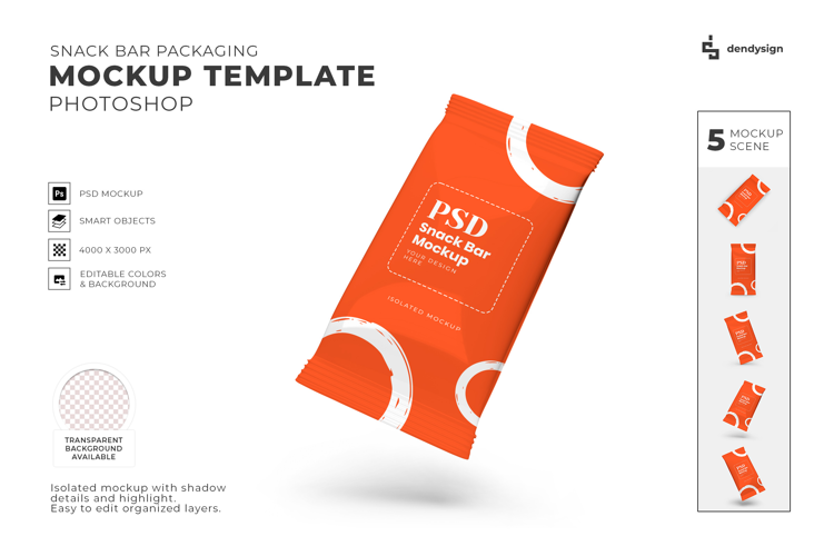 Showcase your snack bar brand, logo, or packaging design in a refined and realistic way with this Snack Bar Packaging Mockup Template. This set includes 5 high-resolution PSD mockup files featuring a modern snack bar wrapper packaging displayed from multiple angles. Built with smart objects for quick customization, you can easily insert your designs, adjust colors, and control highlights and shadows. Ideal for food branding, packaging presentations, retail marketing, and product promotion.