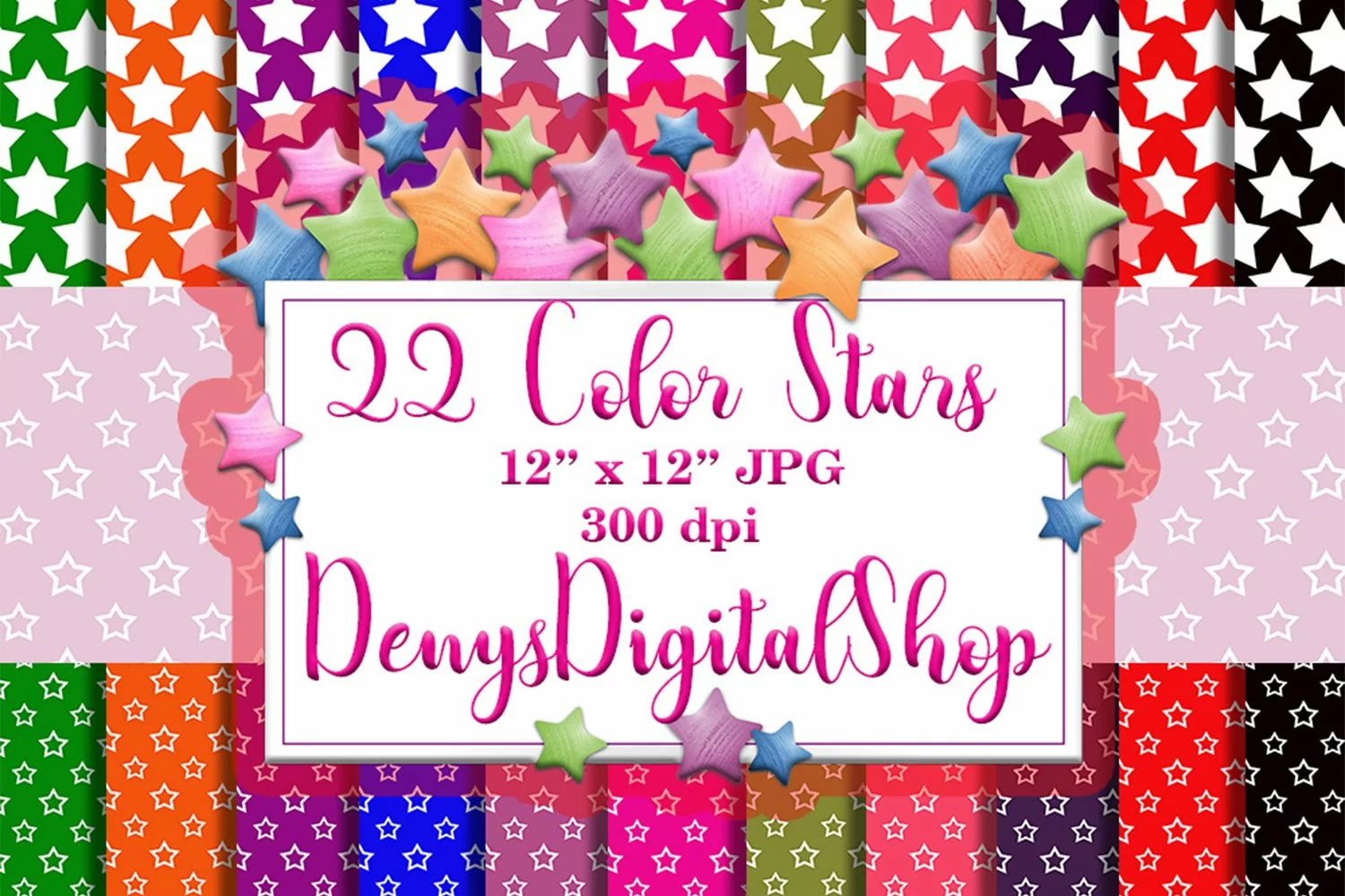 22 Color Stars Digital Scrapbooking Papers 12x12 inches Instant Download