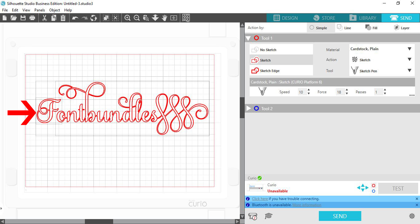 12- Click on send when you are finished. You will see that the glyphs act as text and will have cut lines automatically.
