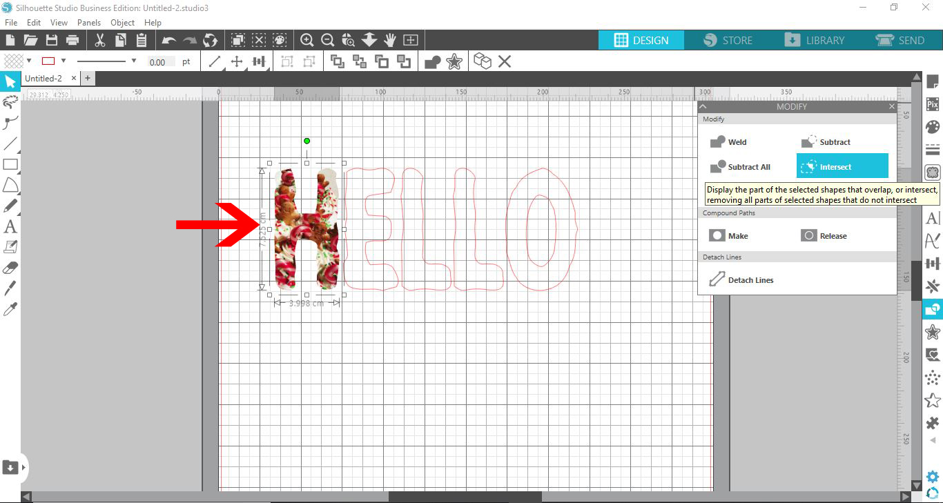 9- Select both and then click on the modify panel. Select intersect. This will only leave the photo when the letter and photo touch.