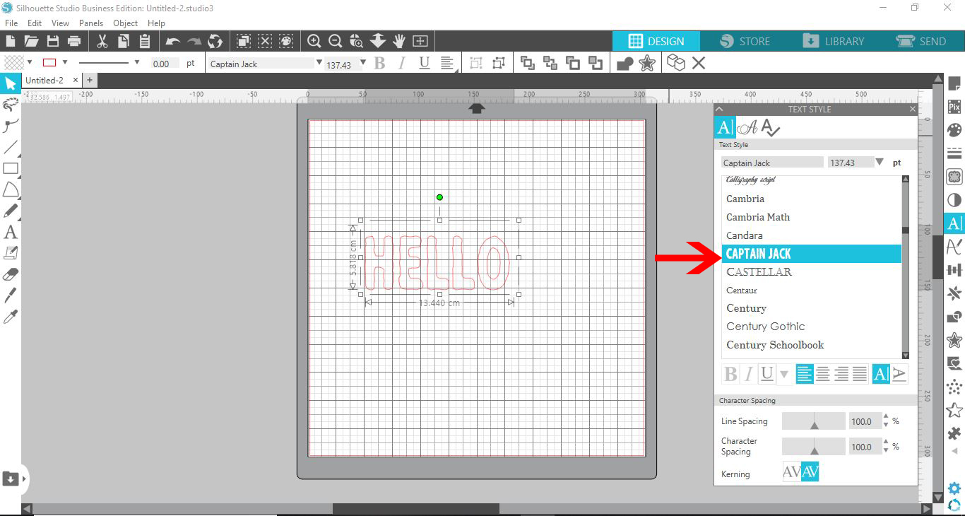 3- Select your font. When inserting photos in a font, try to select a font that is thick so you can see the most of the images. I am usingCaptain Jackby SmartDesigns.