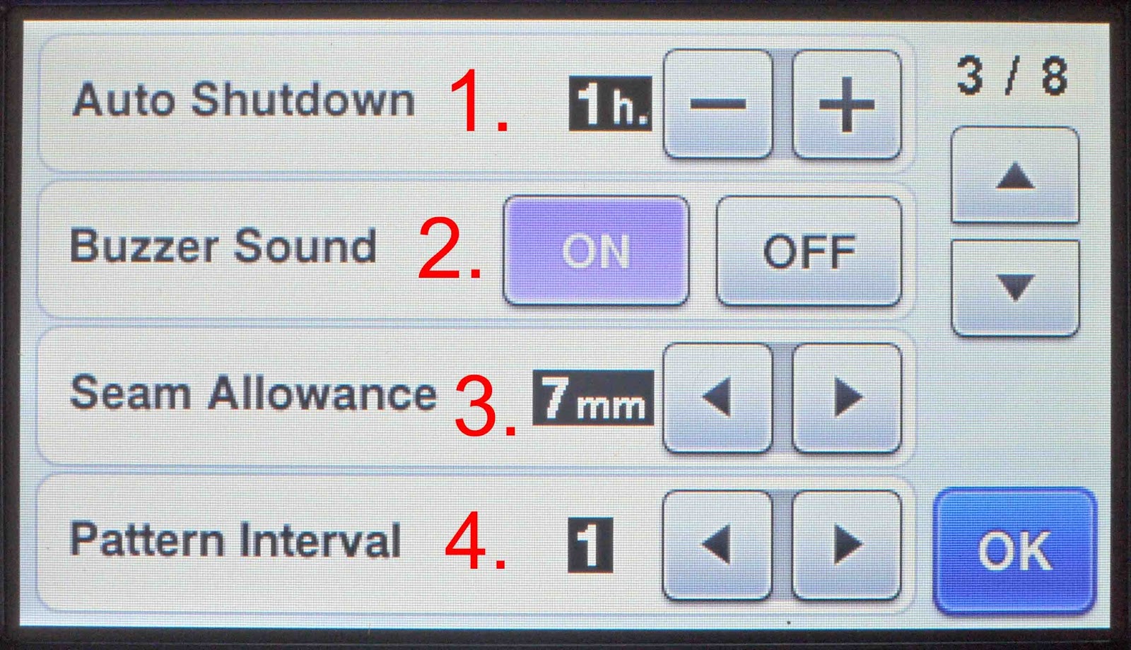 7- You also have a settings button on the actual machine. These settings are general ones for the working of the machine.