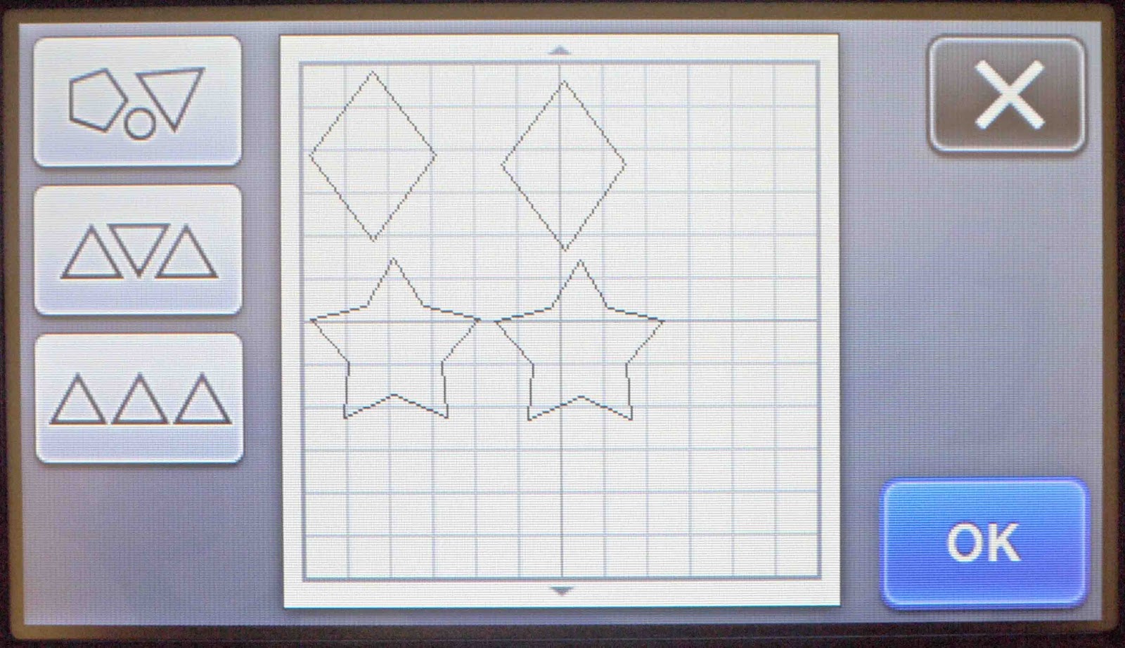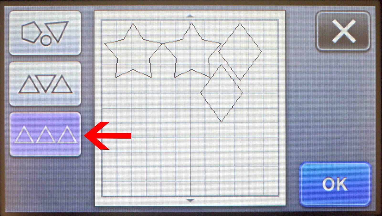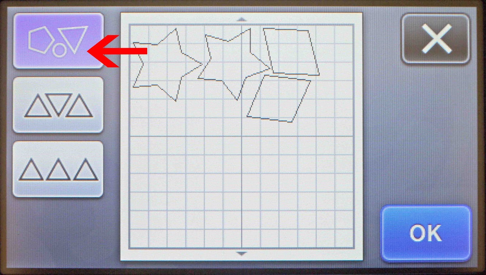 *Note- CM900 machine used.1- Turn on the Scan N Cut machine.2- Select the pattern icon.3- Select the patterns/shapes you would like to use.4- Once you have the patterns onto your screen select the pattern layout icon.5- On the new screen you can click on ...