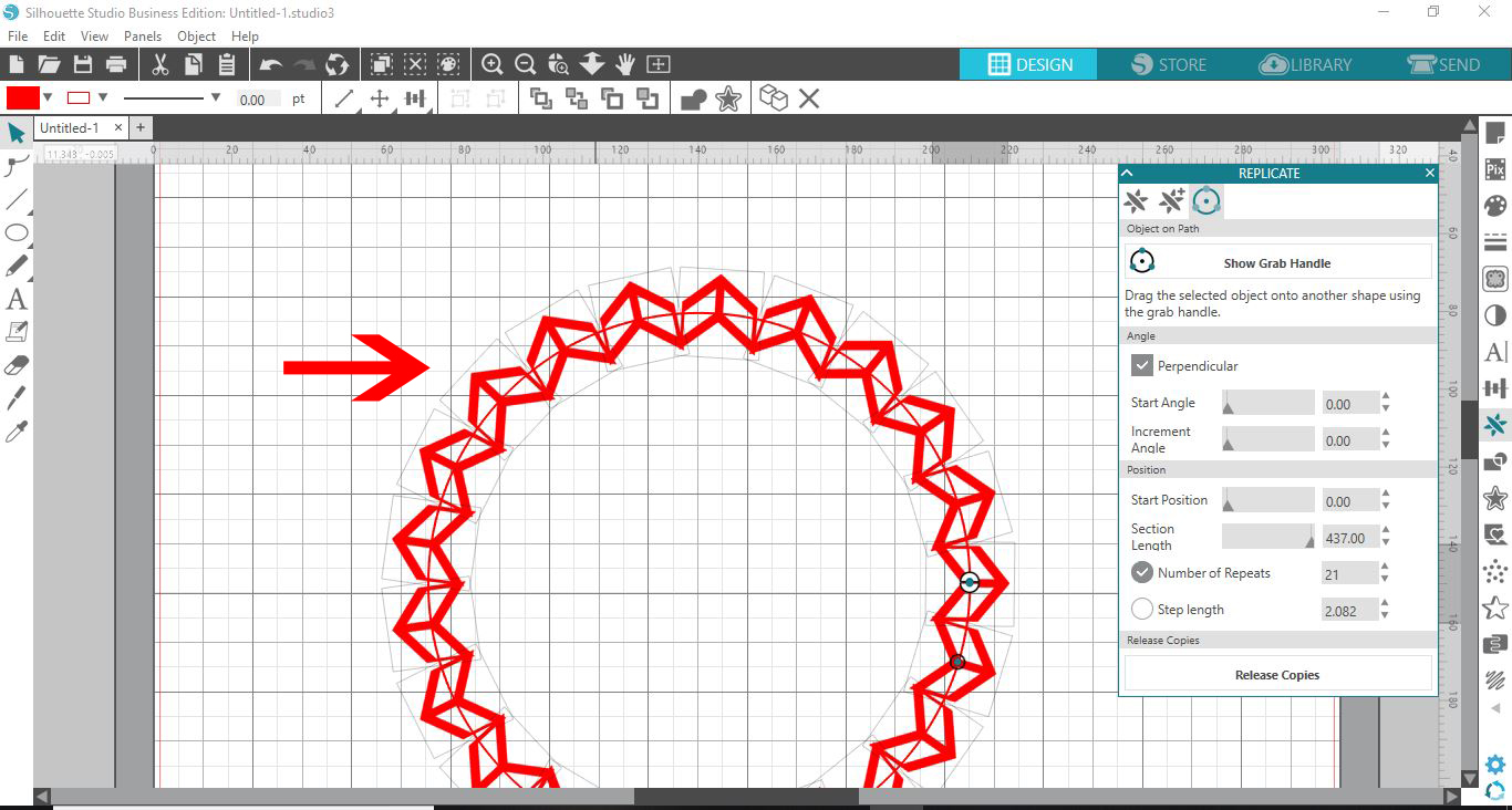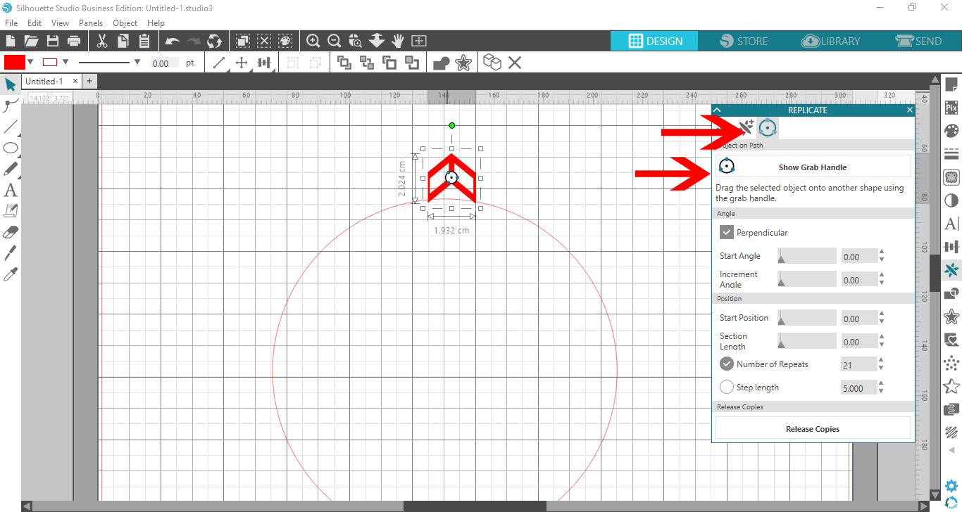 Object to path feature in Silhouette Designer Studio V4.1- Open Silhouette Designer studio software V4 and select the replicate icon.2- In the replicate panel there are 3 options, select the object on path icon.3- Create a shape to place your object on.4- Select your shape.5- Import ...