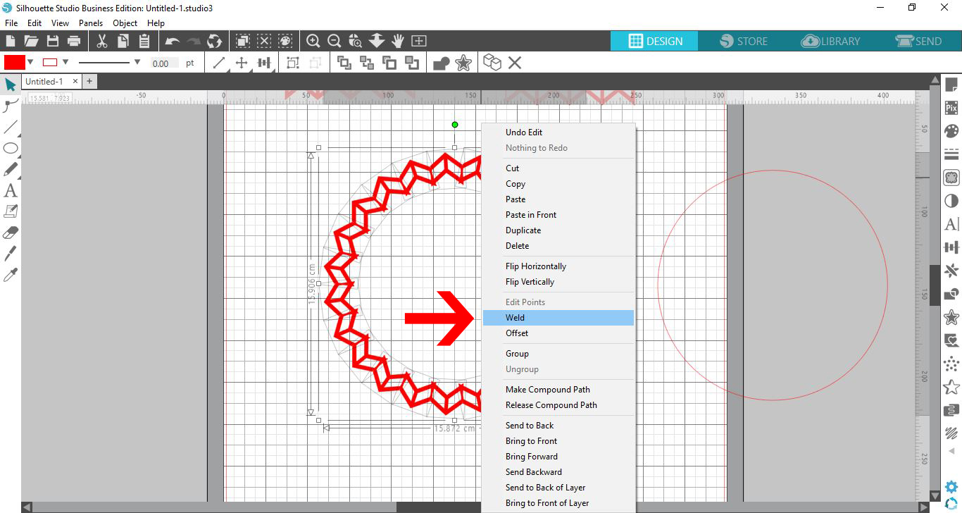 9- click on the grab handle icon in the border section. The border section will replicate the section around the circle.
