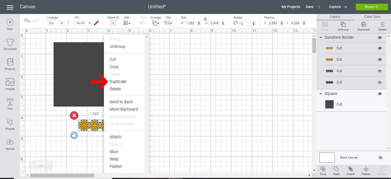 7- Once the image is on your design space, right click and duplicate it.
