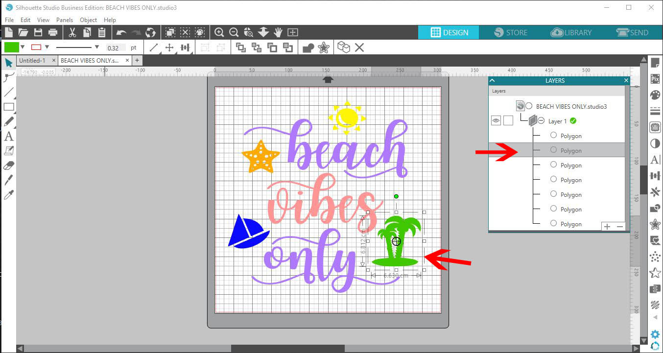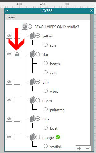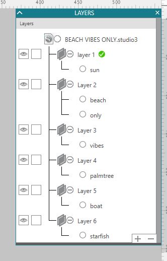 Objects can be sorted into different layers by dragging them to the selected layer. This is great for several objects that are beingcut with the same colored material. It means you can cut these objects all at the same time. You can also keep them in the same spot for layering your design.