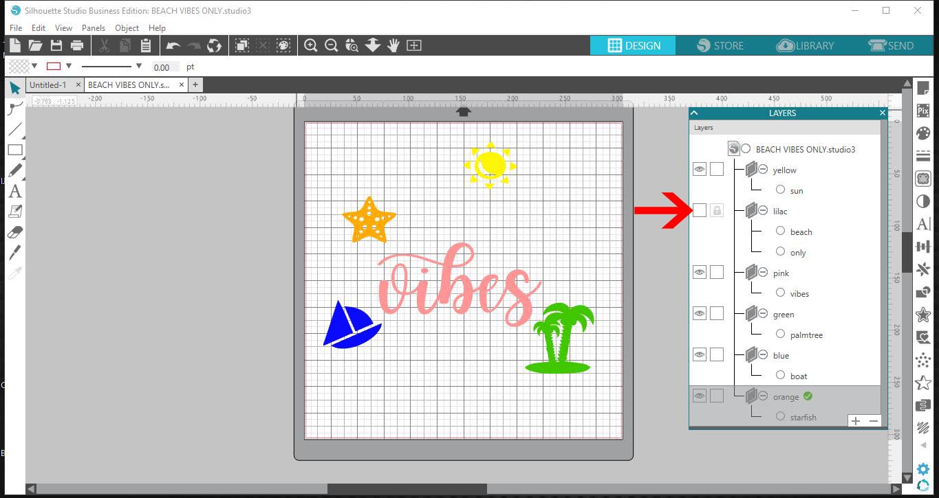 When the Eye icon is visible then so is the layer with the object(s) on it. When you click the box, the Eye icon disappears and the layer with object(s) is hidden. It is good to note that the layer will still cut when sending your design to your silhouette.