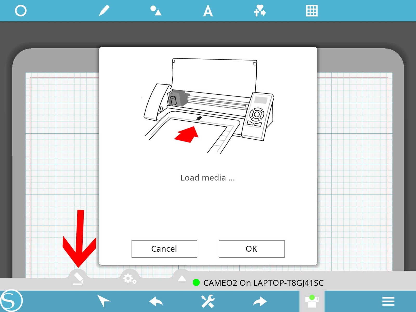 7- By selecting the blade icon it will sent your design to your machine. You will see a screen asking you to load the media.