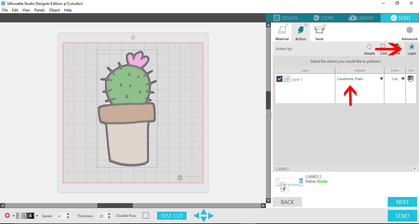14-There is also a new option to cut via layer. Again ensure your media is selected correctly.