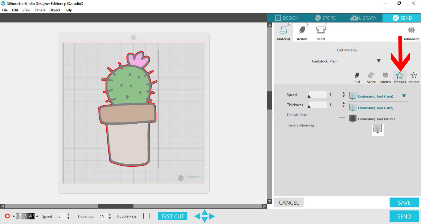 1- with the new V4 software the send to Silhouette icon is now on the right at the top toolbar. Rather than a little icon we now have a "send" text and tick icon.