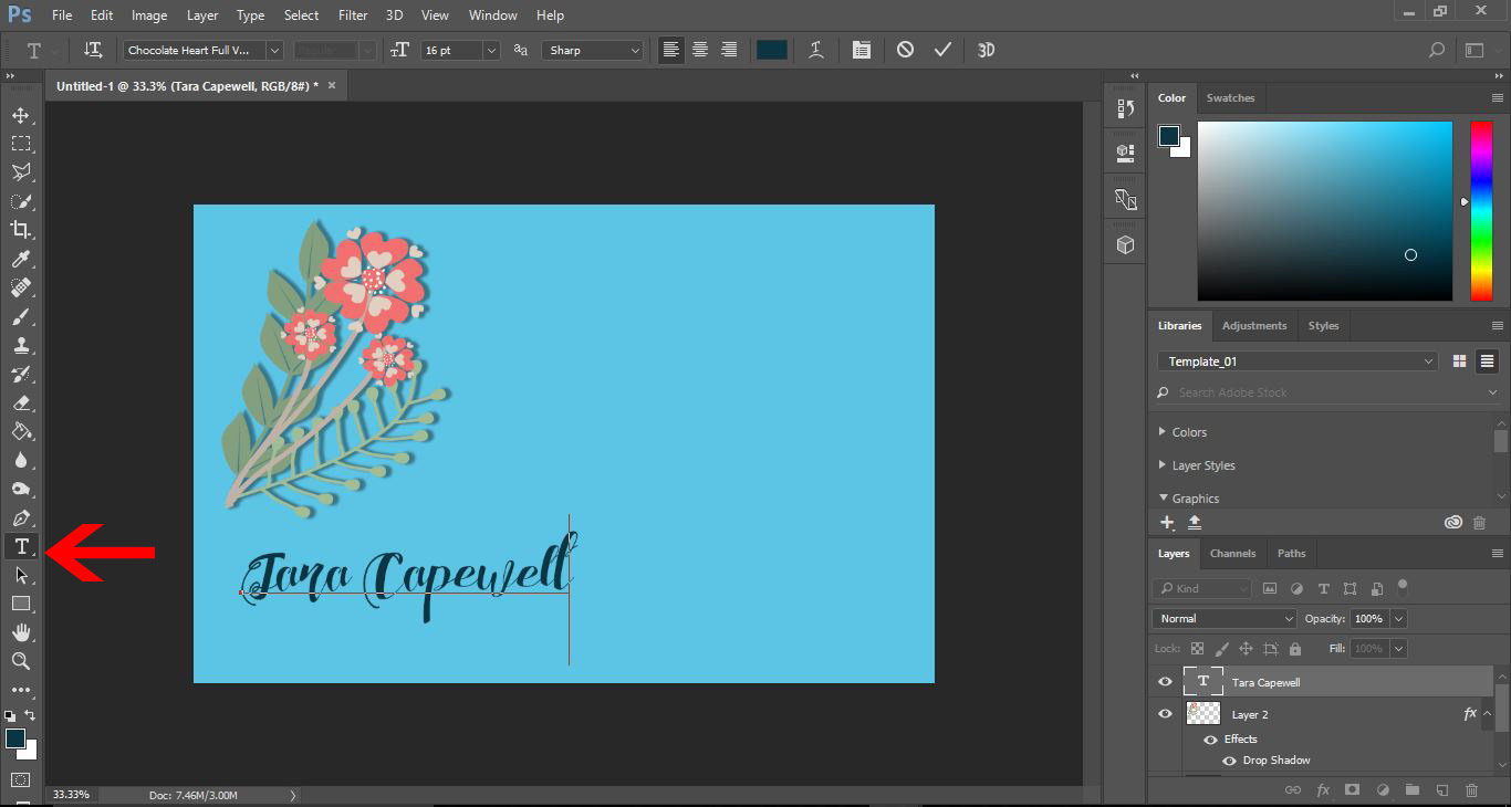 12- Create a new layer. Select the text tool and start typing your information onto the card.