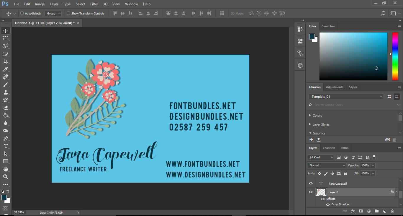 13- When adding your information, create a new layer for each selection of information. This way you can adjust them to fit the business card without affecting the other text.