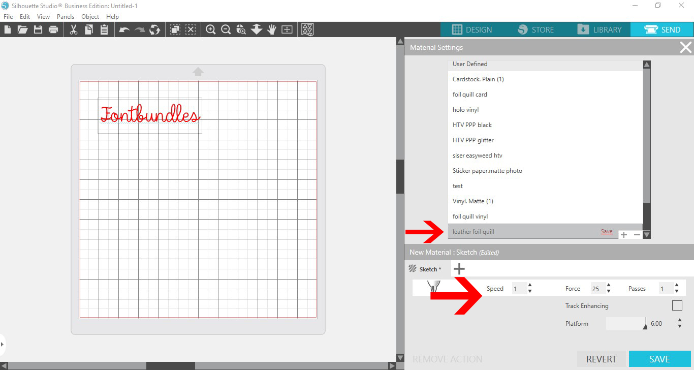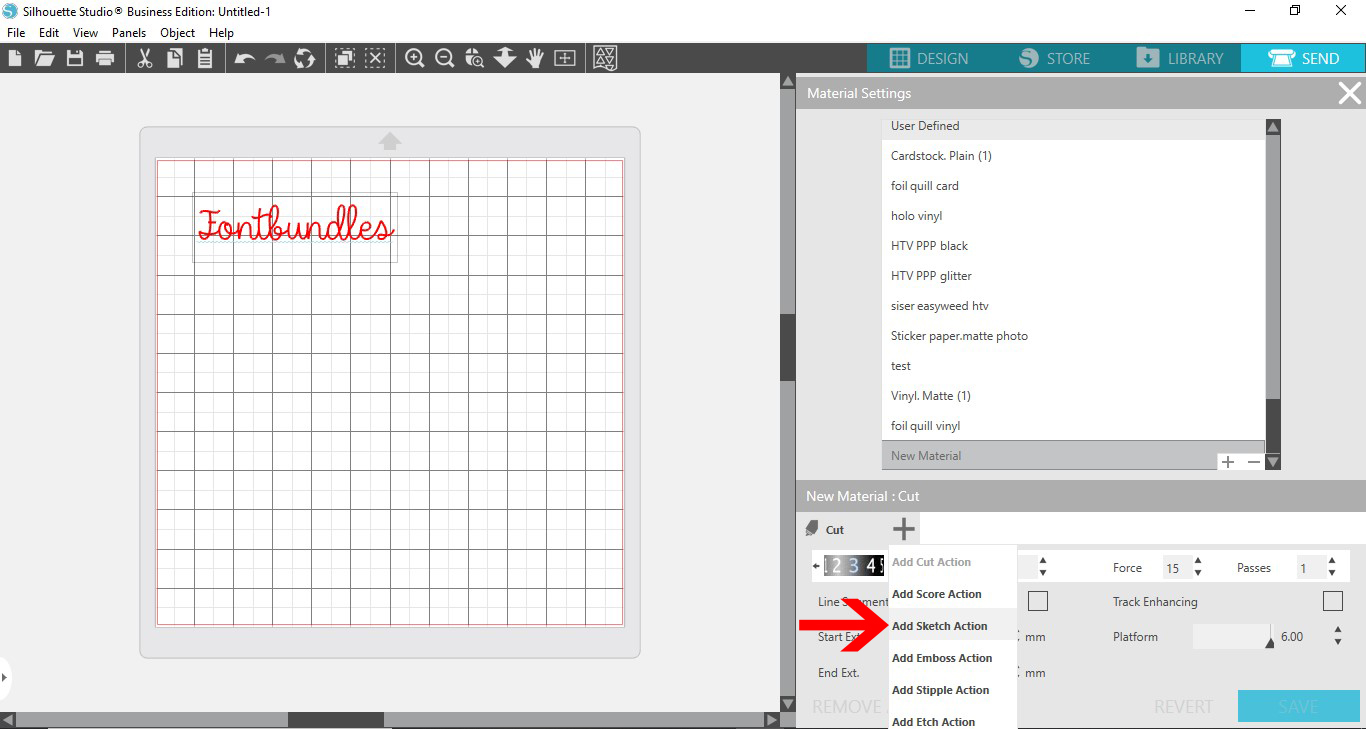 1- Open silhouette studio. Open up your design or you can type text.2- I have chosen to use text. Type your text.3- Change your font to either a single line font or a font you can sketch fill.4- Go to the send screen when your design is ...