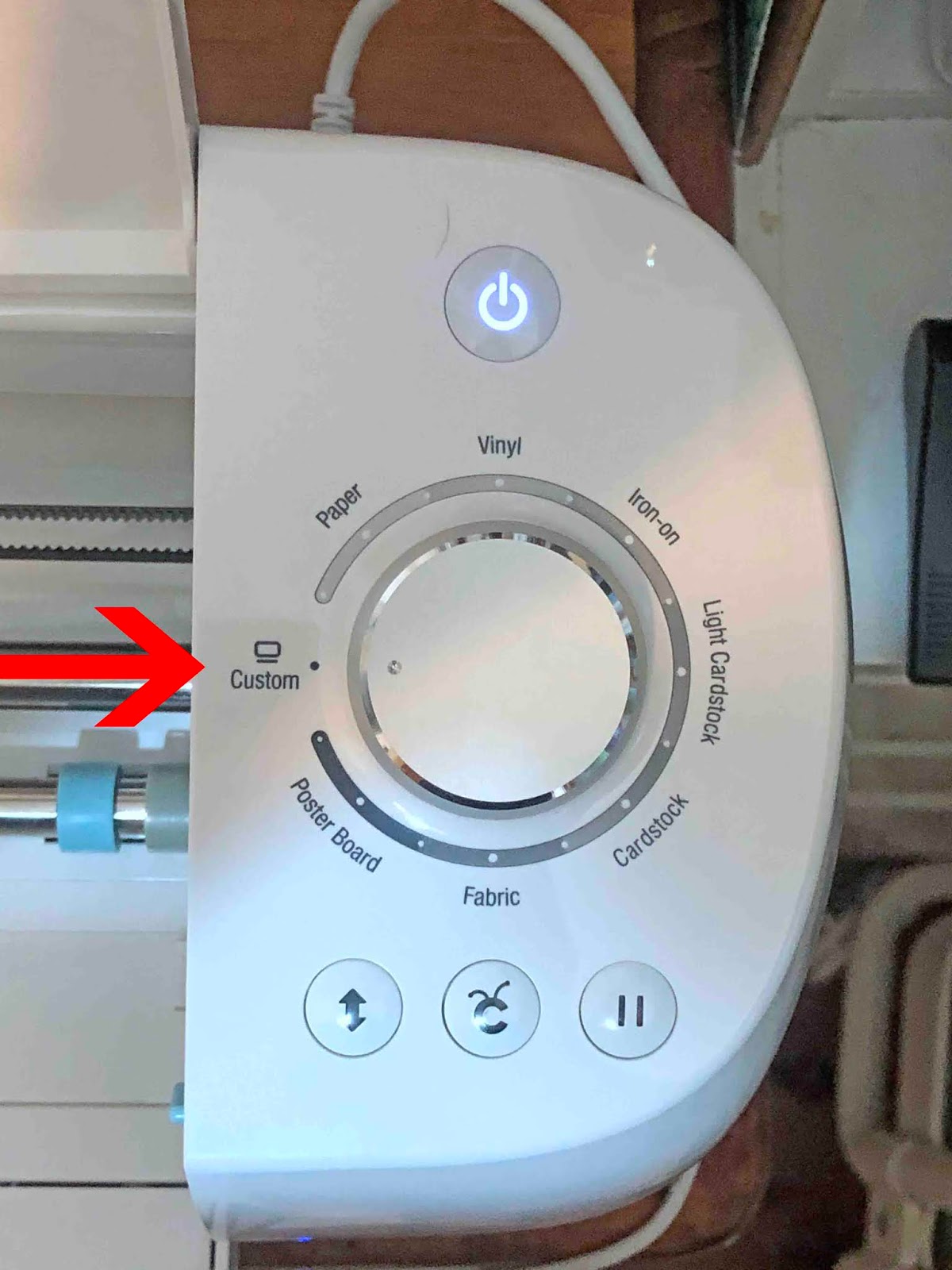 7- Set your dial to the media you are using. You can set to custom and then select vellum from the drop down options. Once you have inserted your mat and foil quill click Go.