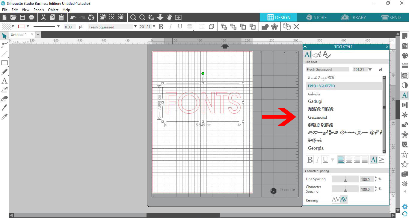 Change the font by selecting the Text Style panel on the right hand side. We have a great tutorial on how to use any font in Silhouette Studio if needed. You can even add glyphs to your text for a more interesting look.