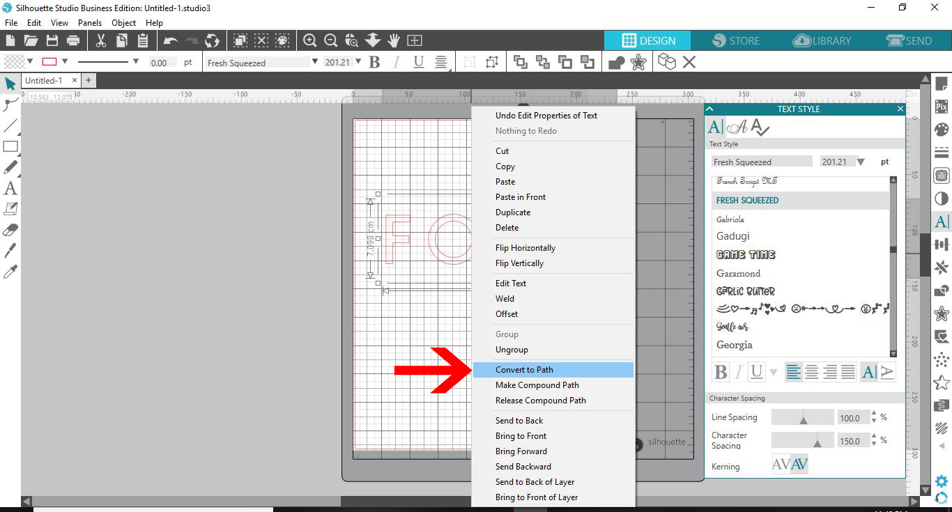 1- Open up Silhouette Studio (free version) Click on the text icon.2- Type your text.3- Select the font you want to use. I am using Cheesy Grits font from fontbundles.net4- Once you are happy with your text Go to File - Save as - Save to ...