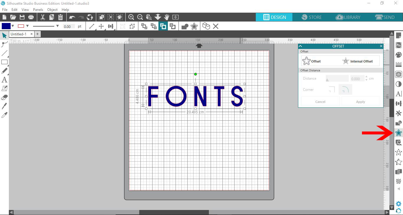 We are now going to add an offset to our text. On the right side panel, click on the icon Open Offset Panel.