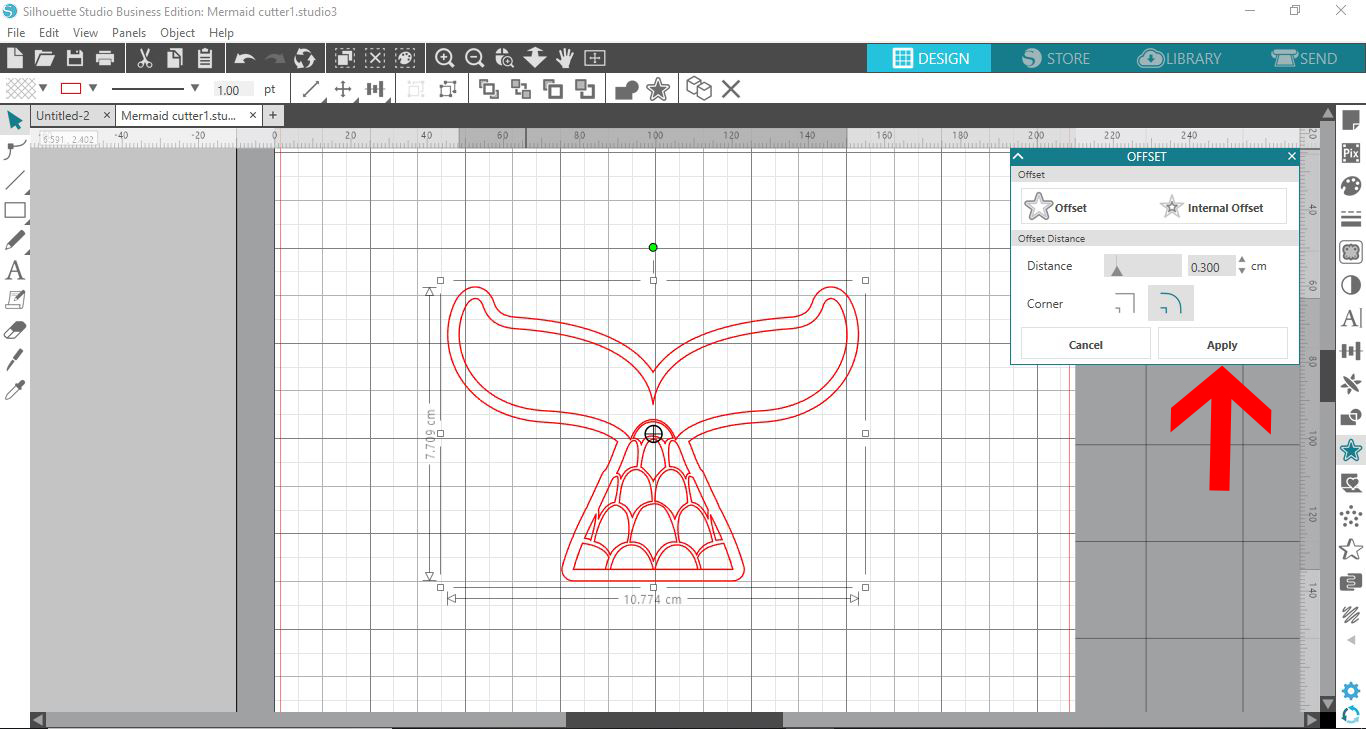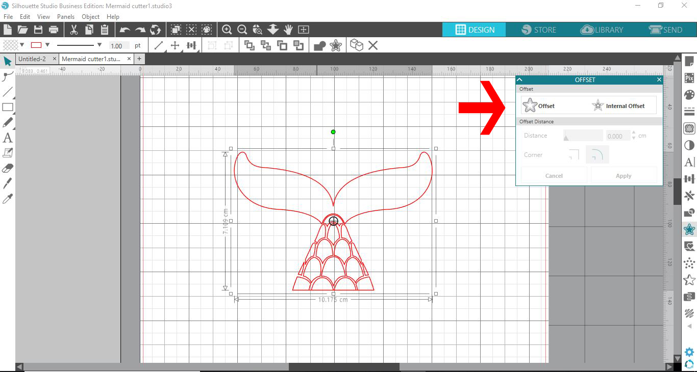 The design will be the embossed area for the cookie cutter. We need to create an offset for the side that will cut into the cookie dough. Open the Offset panel on the right side toolbar.