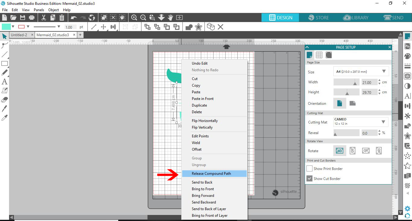 Once again, right click and select Release Compound Path. We do this in case we want to remove parts of the design that are not needed.