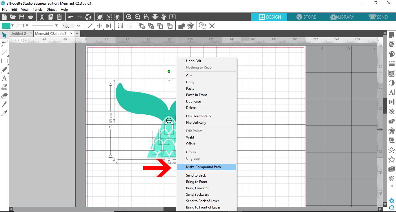 We will be using a mermaid tail SVG for this tutorial. There are tons of Summer SVGs to choose from on Design Bundles! You can use the Free Edition of Silhouette Studio to edit your SVG design.