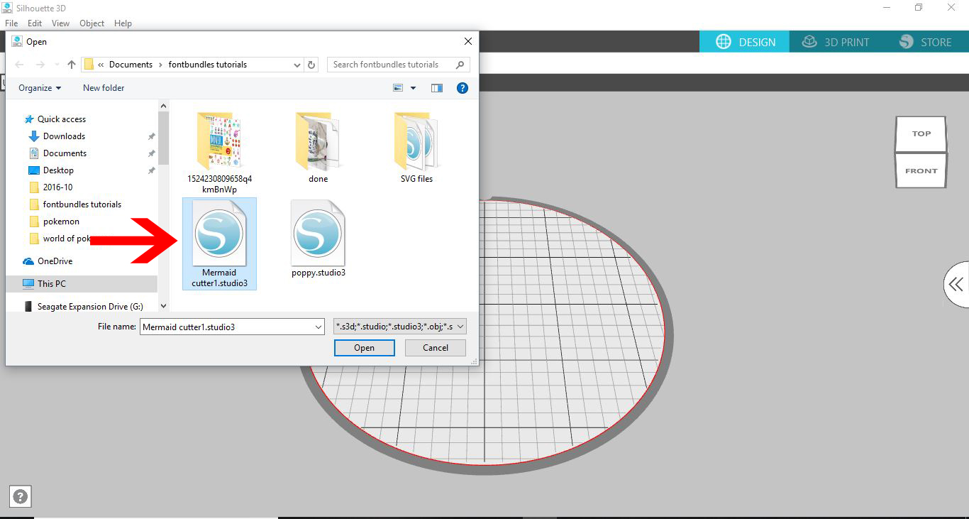 Select the Silhouette Studio file you saved in Step 3.
