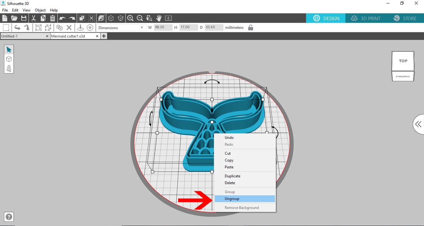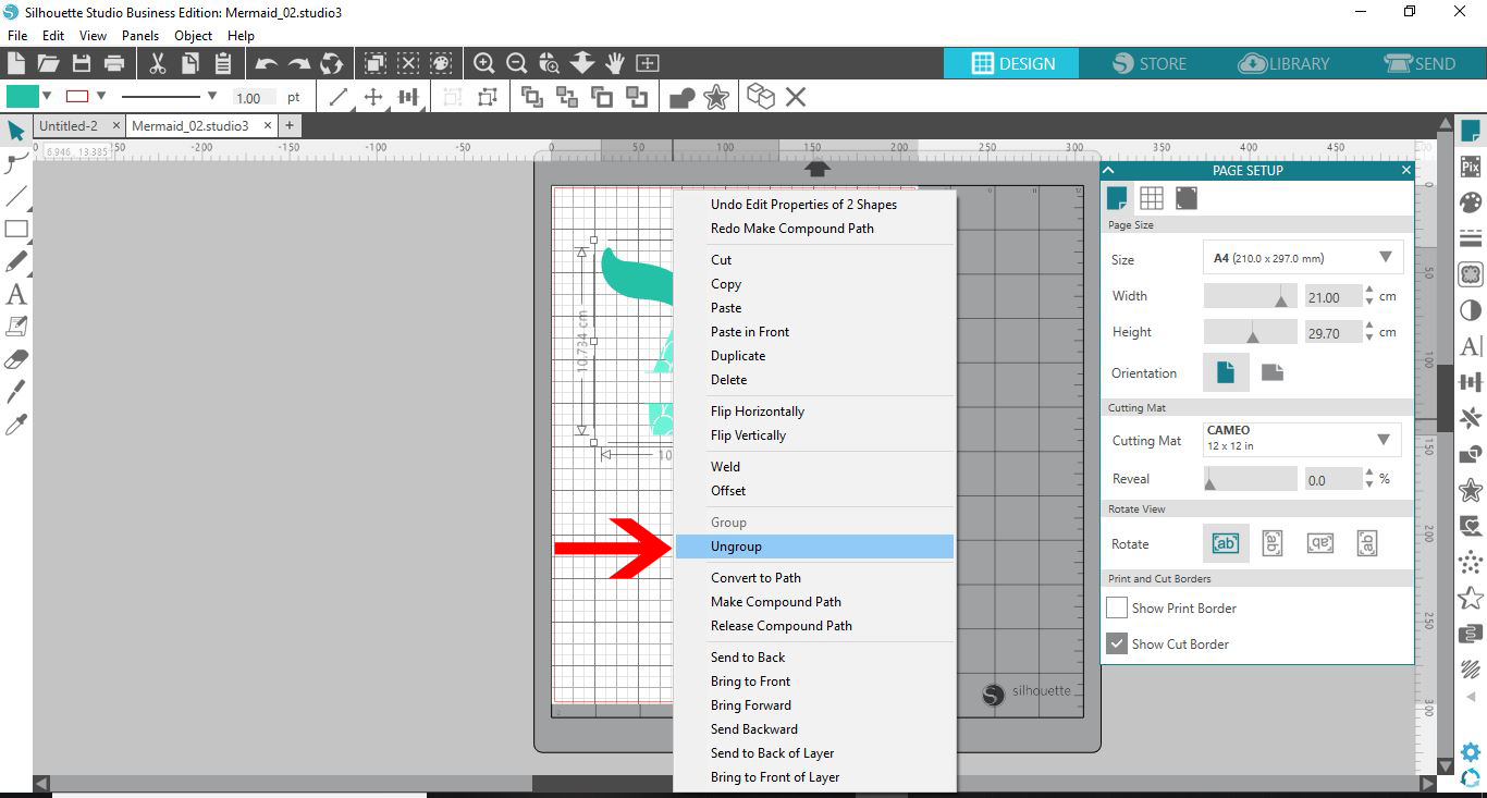 Once opened, we need to ungroup the design by right clicking > Ungroup.