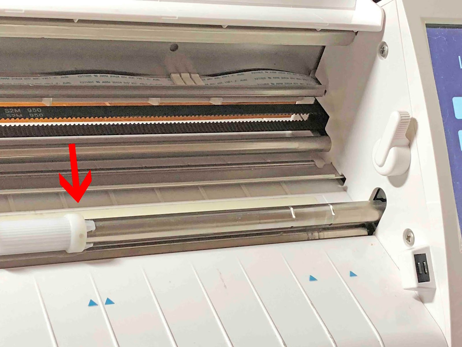 Open your Cameo or Portrait and locate the machine lever inside on the far right. Now turn this clockwise. Don’t use any tools as this may cause damage. The lever should be easy enough to turn.