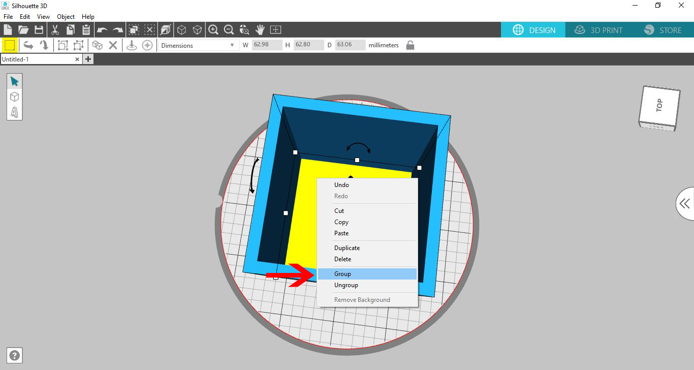 1- Open Silhouette Alta 3D software. Click on the right tab to access the library.2- Click on the library.3- Select a basic 2D file. Double click on it.4- A new window will appear. Select the cookie cutter option.5- Your design will appear directly as a cookie ...