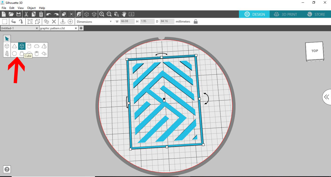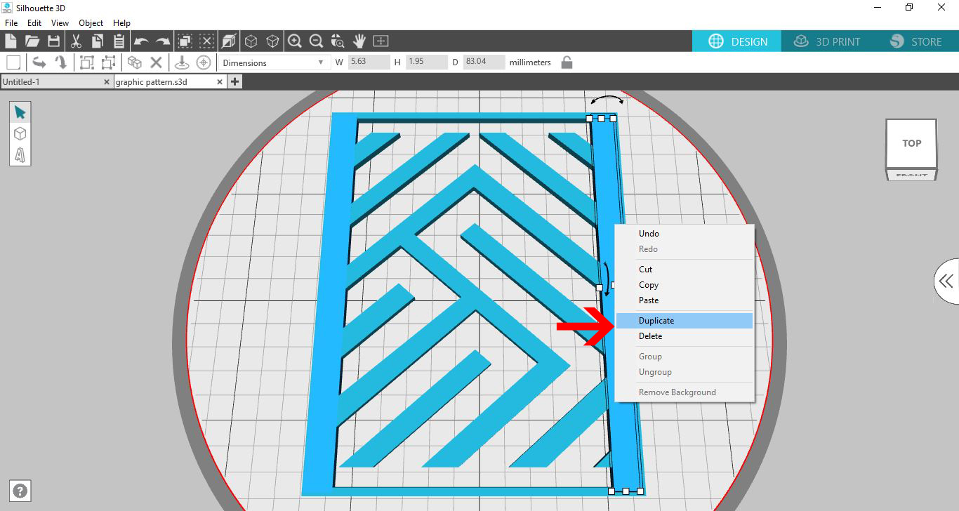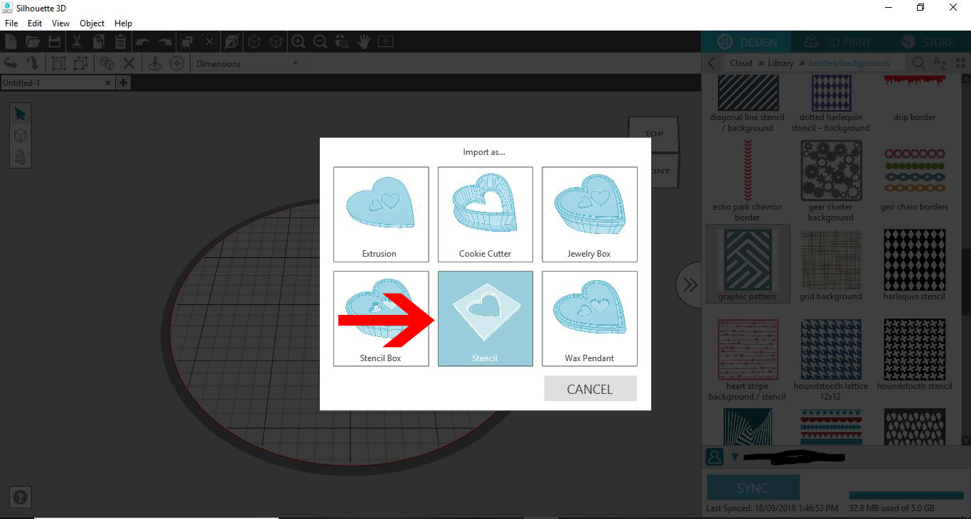 1- Open Silhouette Alta 3D software. Click on the right tab to access the library.2- Click on the library.3- Select a basic 2D file. Double click on it.4- A new window will appear. Select the cookie cutter option.5- Your design will appear directly as a cookie ...