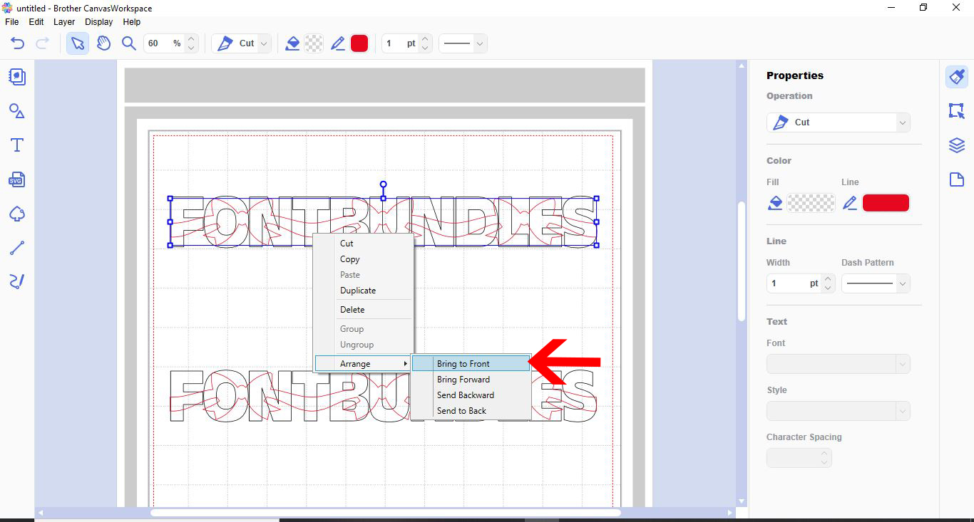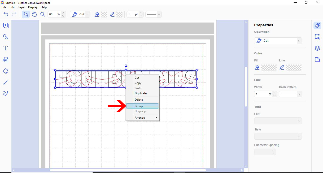 1- Open canvas workspace.2- Click on the text icon.3- Type your text.4- Open the shape icon.5- Create a square.6- Resize the square to a tiny rectangle to use as a stencil bridge.7- Rotate the rectangle 90 degrees.8- With the rectangle selected, right click and ...