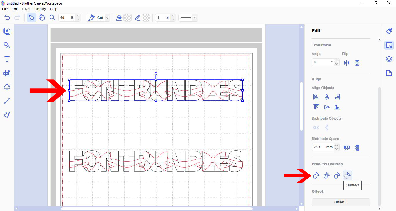1- Open scan and cut canvas workspace. Click o the text icon.2- Select your font and then type the text you would like to make a card with.3- Select the text then click on the edit option. Click on the offset icon.4- A new window will appear. ...