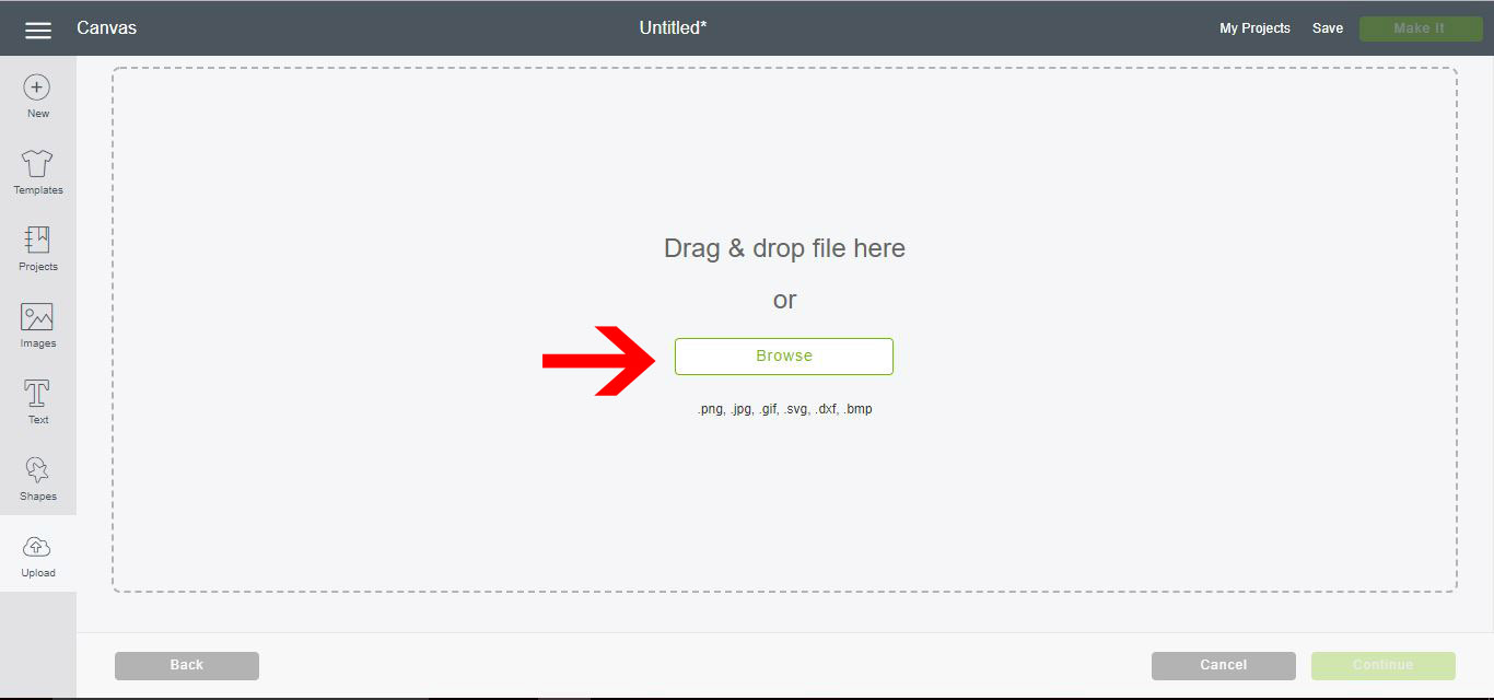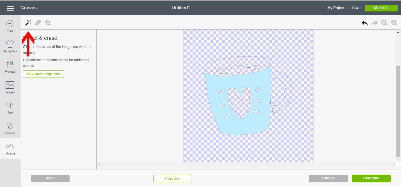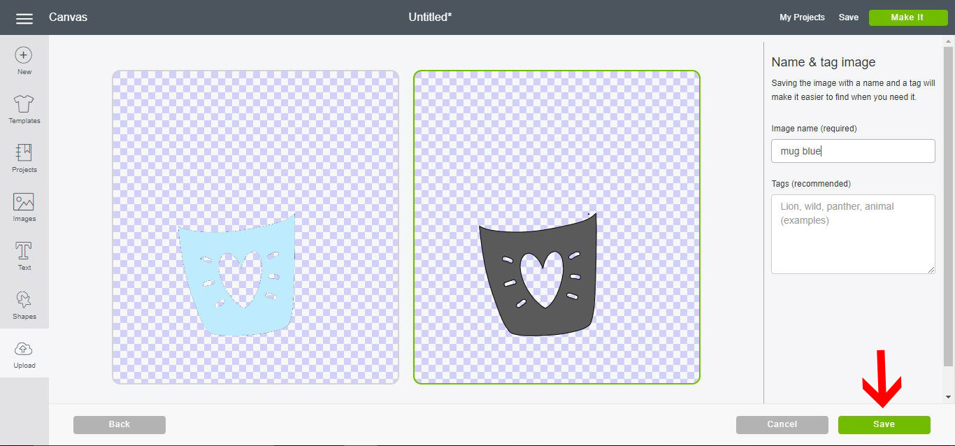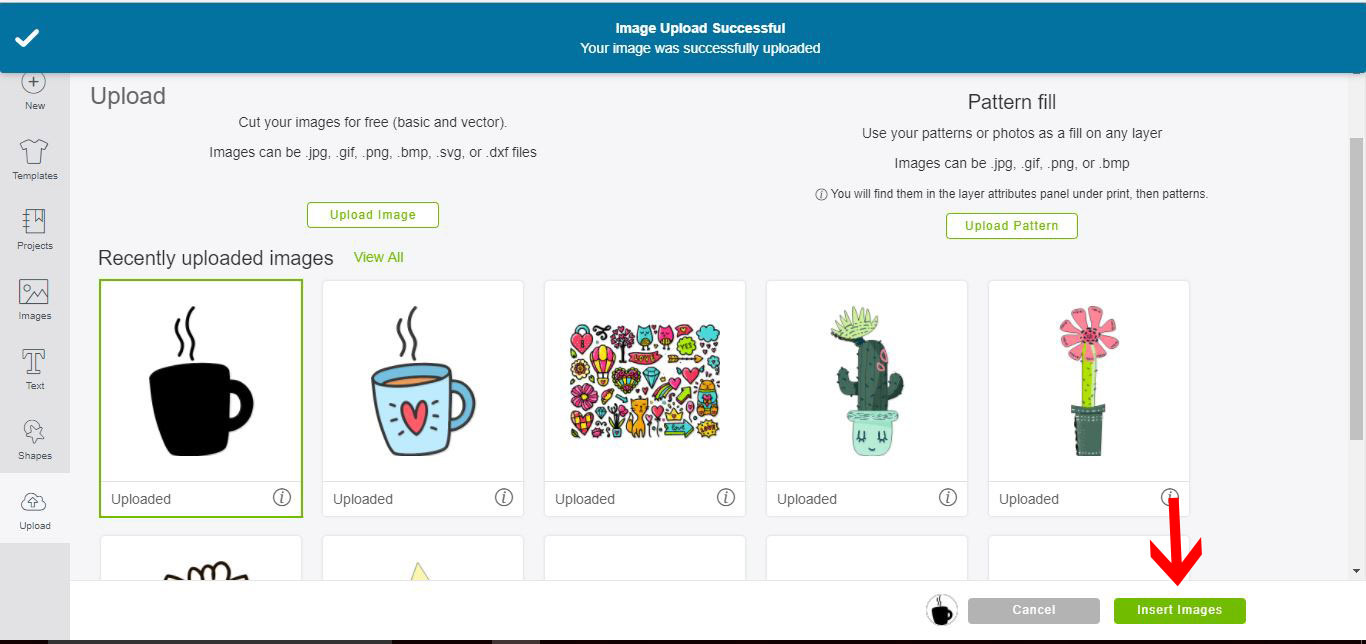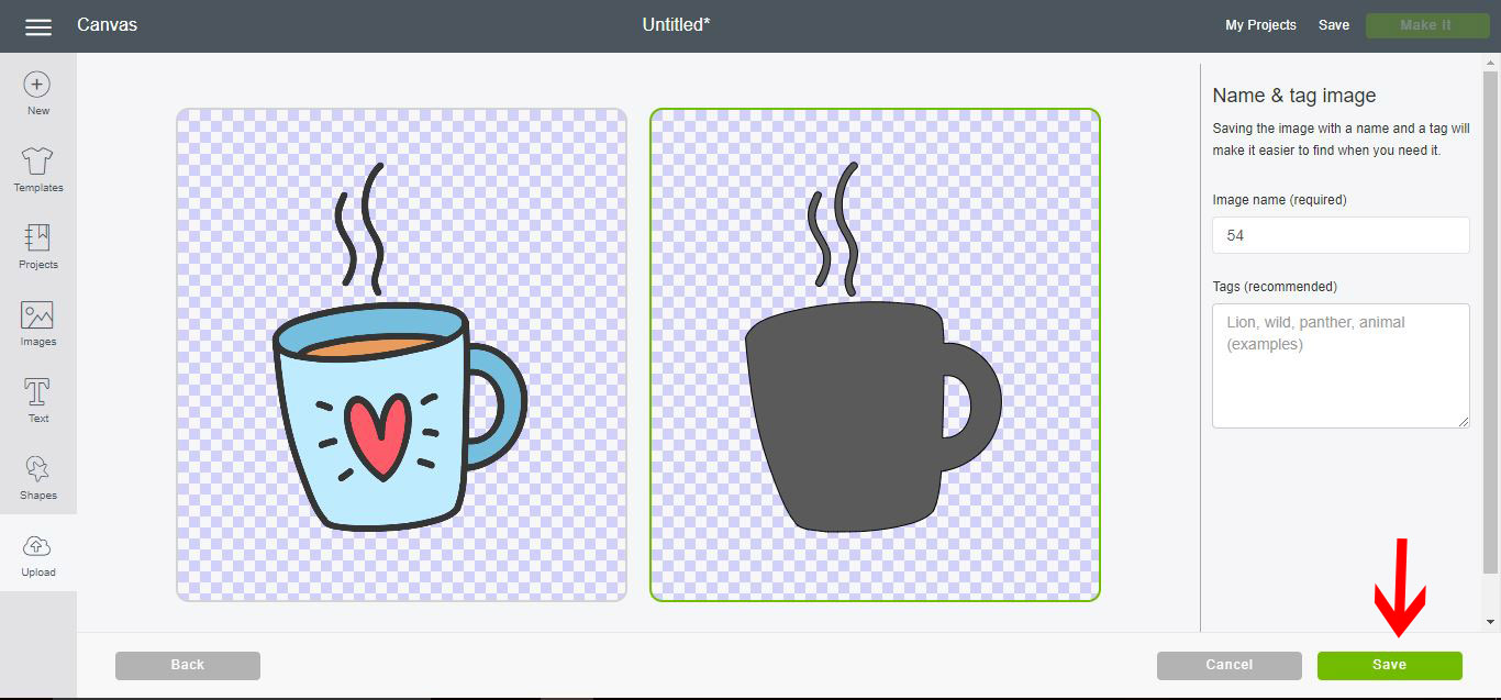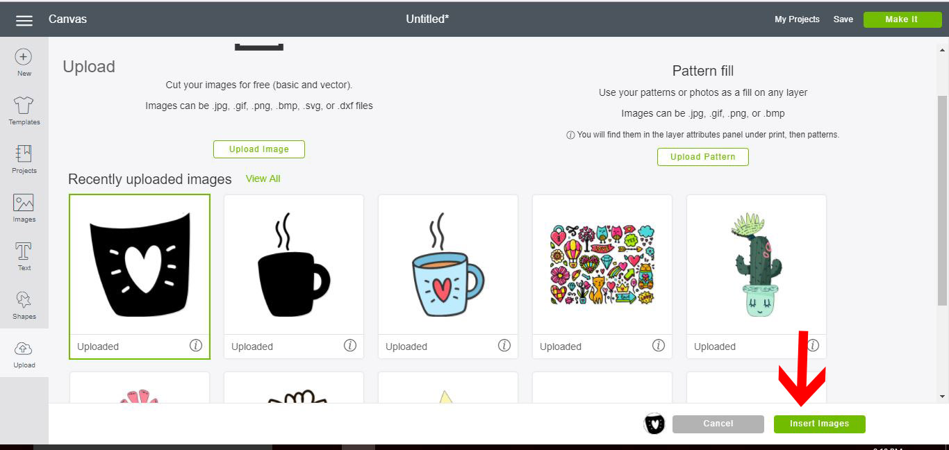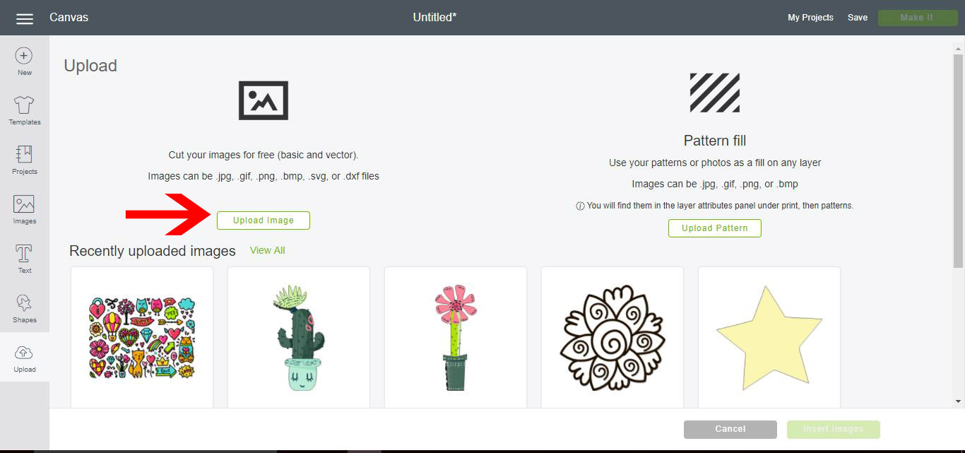 1- Open Cricut Design Space. Click on the upload image icon on the left toolbar.2- In the next screen click on upload image.3- Your uploaded image will appear onscreen. As you can see there are multiple images on this design but we only need a couple of the ...