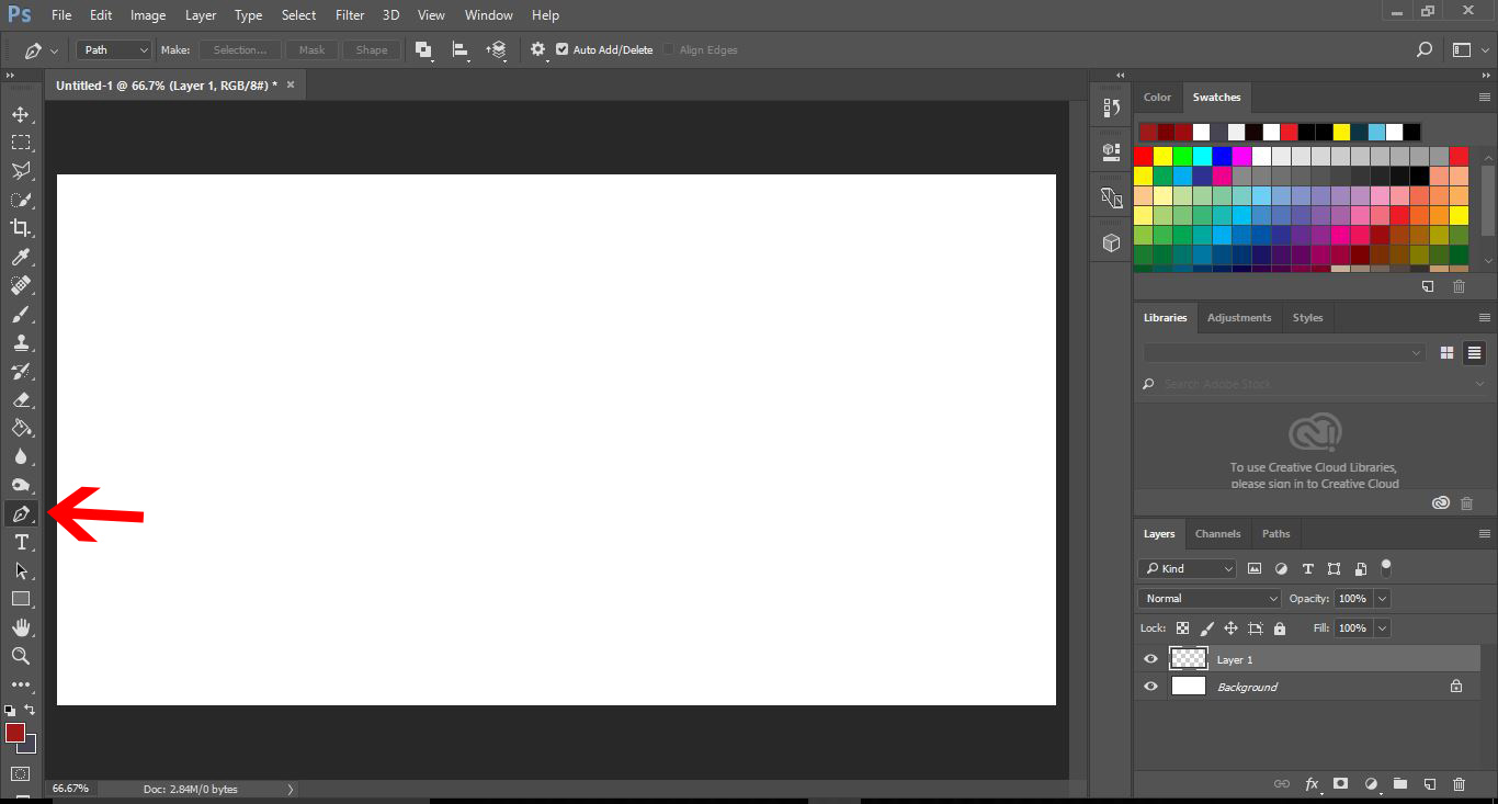 5- Create your curve line with the pen tool. Adjust the nodes to suit your curve.