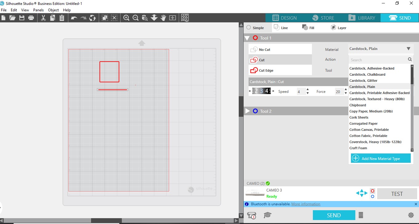 When using the foil quill you will need to change certain settings. Firstly, change the Material to what you are using. For this tutorial we are using cardstock.