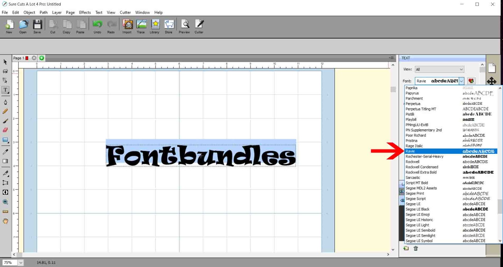 1- Open SCAL4. Click on the text type tool.2- Type your text.3- Using the text tool change the font to the one you need to make slightly thicker. I am using the font flawless fairytale from designbundles.net4- Resize the text. Hold the shift key to keep ...