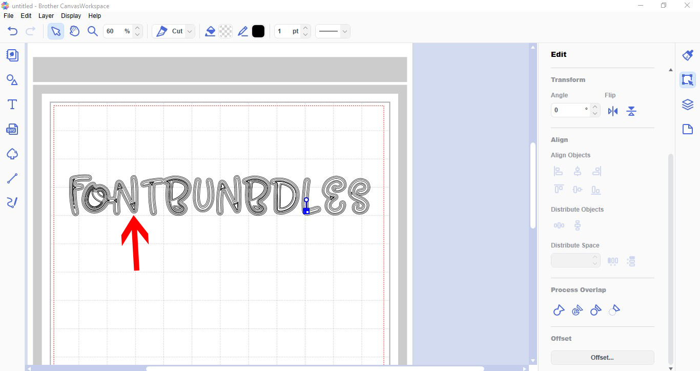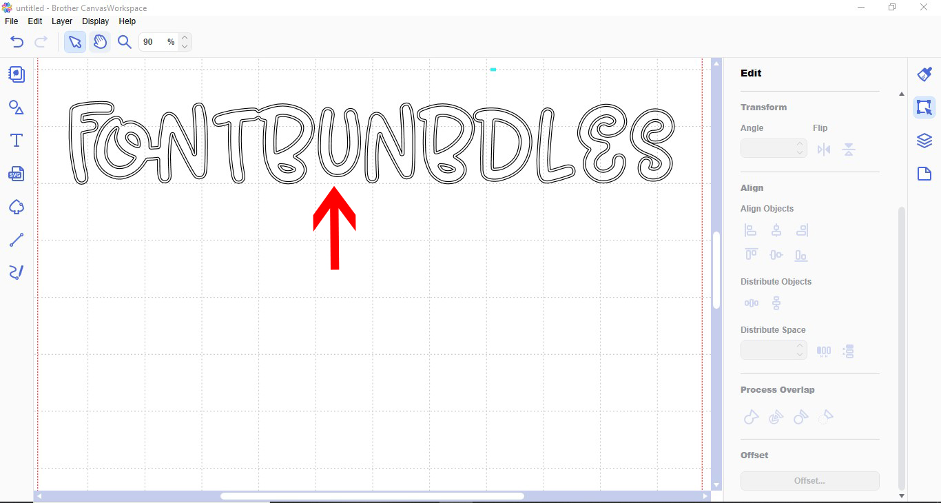4- If any letters are overlapping, click on the weld tool. Once all welded, click on offset.