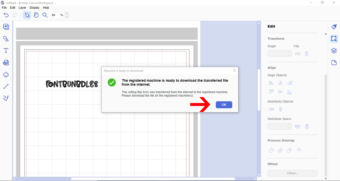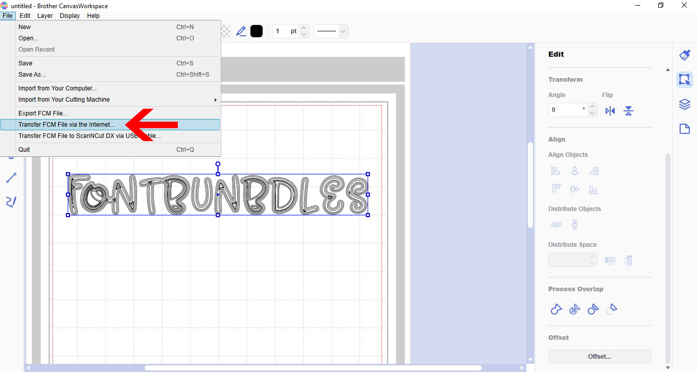 12- Once your text is filled you need to send it to your Brother scan and cut machine. Go to file and click transfer FCM file to the internet.