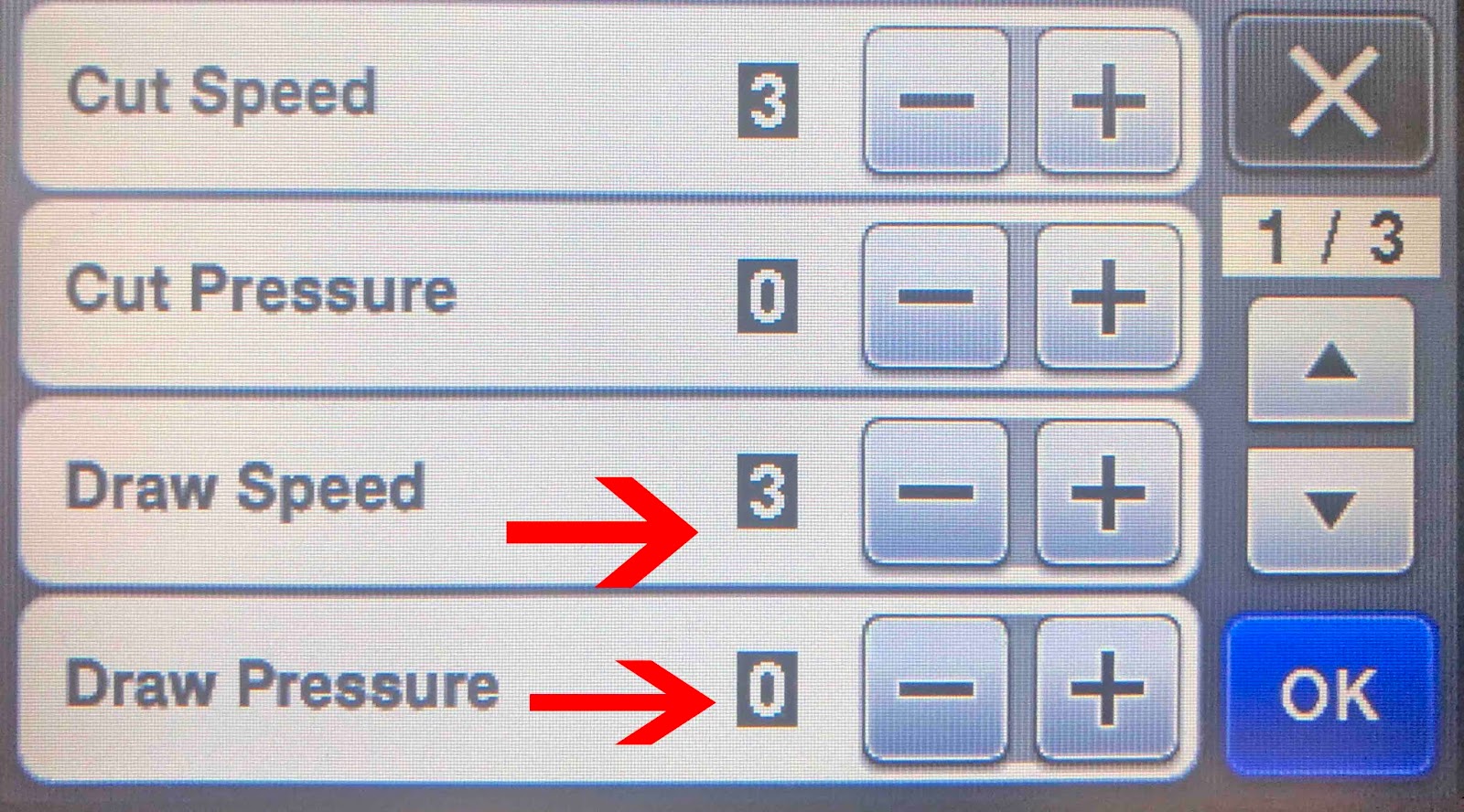 21- Make sure your draw settings are set to match your media. I am using card so i have set the speed to 3 and the pressure to 0