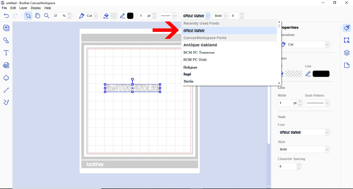 1- Open scan and cut canvas. Click on the text icon.2-Type your text.3-Select your font. I am using Pumpinko font from Font Bundles.4- Adjust the character spacing so each letter is just overlapping.5- With the text selected, click on the weld process overlap. this will join ...