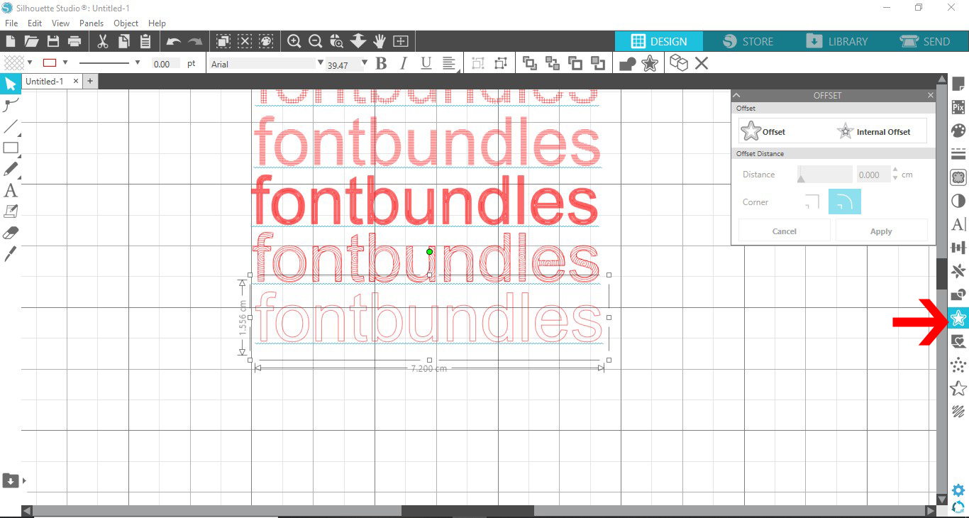 Did you know that you use the Offset Tool to create a text fill? This is created by adding multiple offsets within each other. On the right side toolbar, click on the Offset Tool.